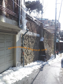 Last night, when I got home, when the temperatures were dropping to about -15'C, I saw a neighbor's pipe busted and water was gushing down through the alley in the neighborhood like a mini-water falls and turning our neighborhood into an icy mini-Cheonggye-cheon, but without the tourists. These neighbors must have been away for the lunar new year holidays as their lights were out.